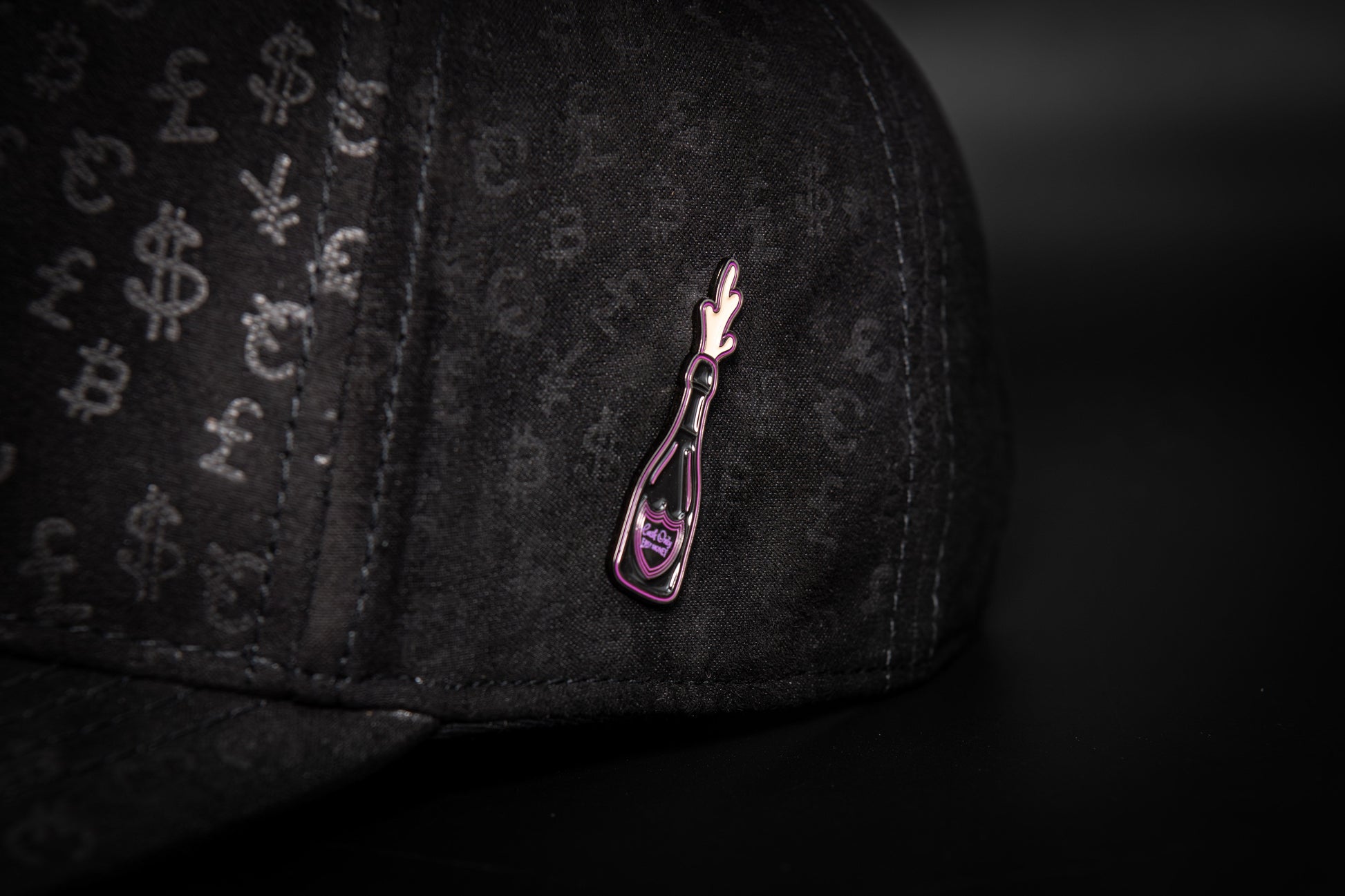 Inspirée des codes du luxe et des icônes festives, la casquette DON PE FULL PRINT – Easy Money Edition de Cash Only est une véritable déclaration de style. Son badge métallique violet et noir reprend les lignes d’un blason d’exception, entouré de branches d’olivier, avec l’inscription "Cash Only – Easy Money" gravée en relief.