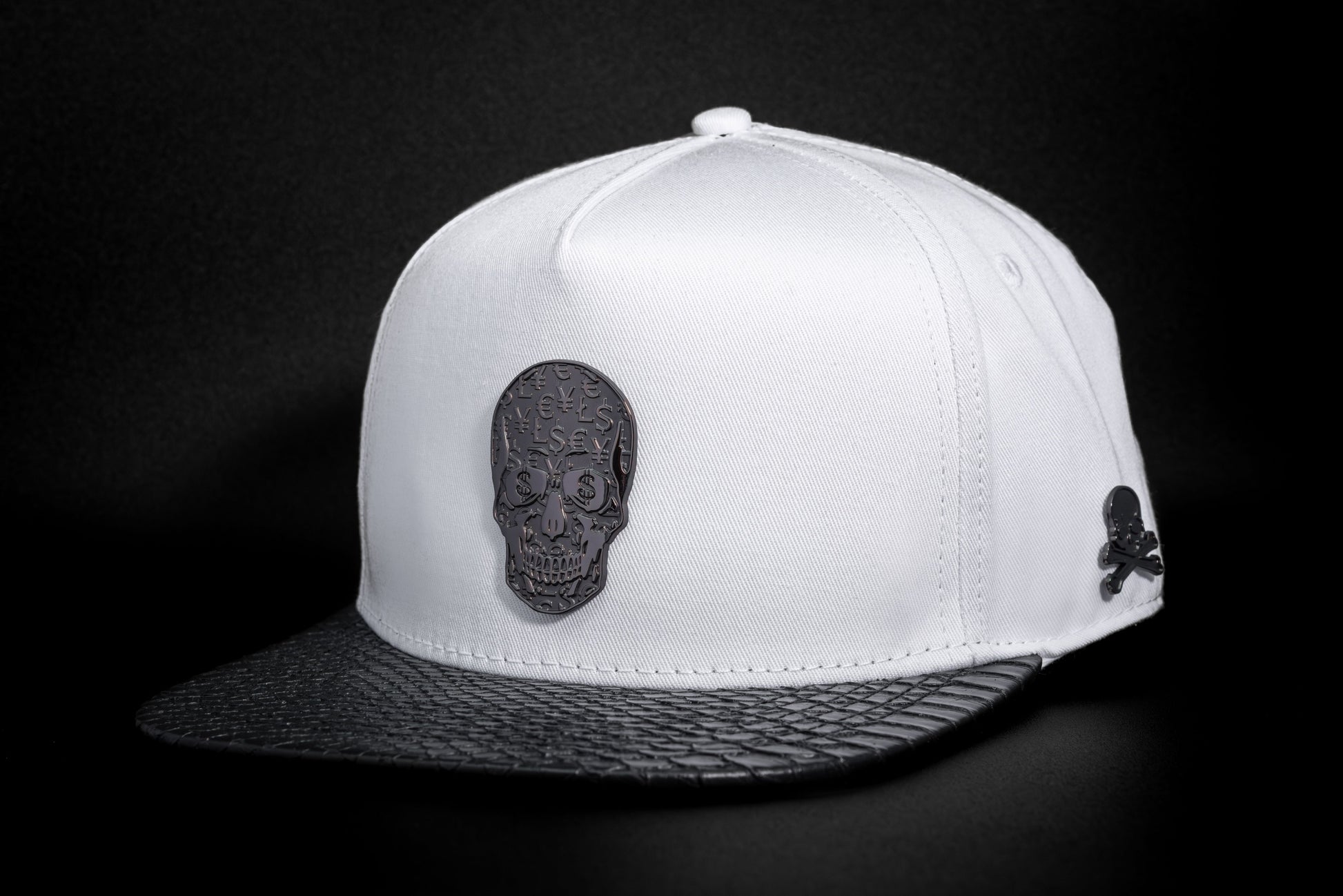 Casquette Skull Blanche – Visière Python Noire | Cash Only